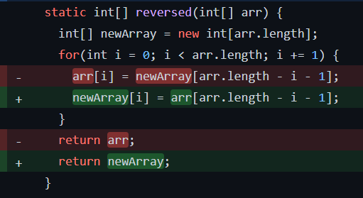 The bug is that the wrong array is modified and returned.